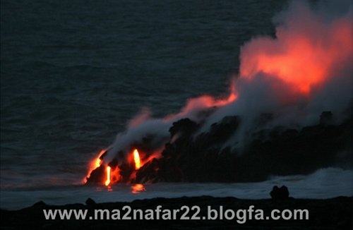 گداخته از آن بیرون می آید و آب را می سوزاند.